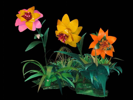 Les disproportions entre les végétaux et les humains, la forme des feuilles et les coloris utilisés par le Douanier se retrouvent dans les fleurs du jardin de l’Empereur.
